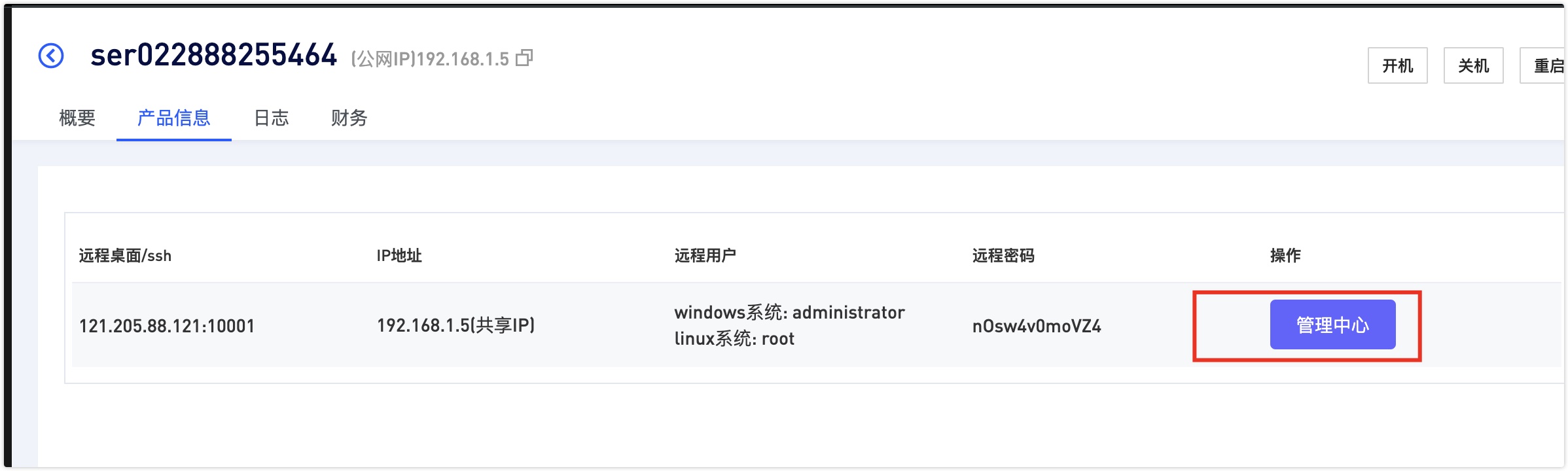 找到您购买的“云电脑”或“挂机宝”产品,点击“管理”。